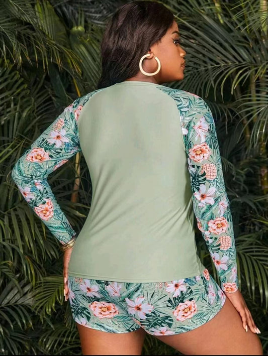 Women's Fashion Long Sleeve High Waist Split Bikini Swimsuit