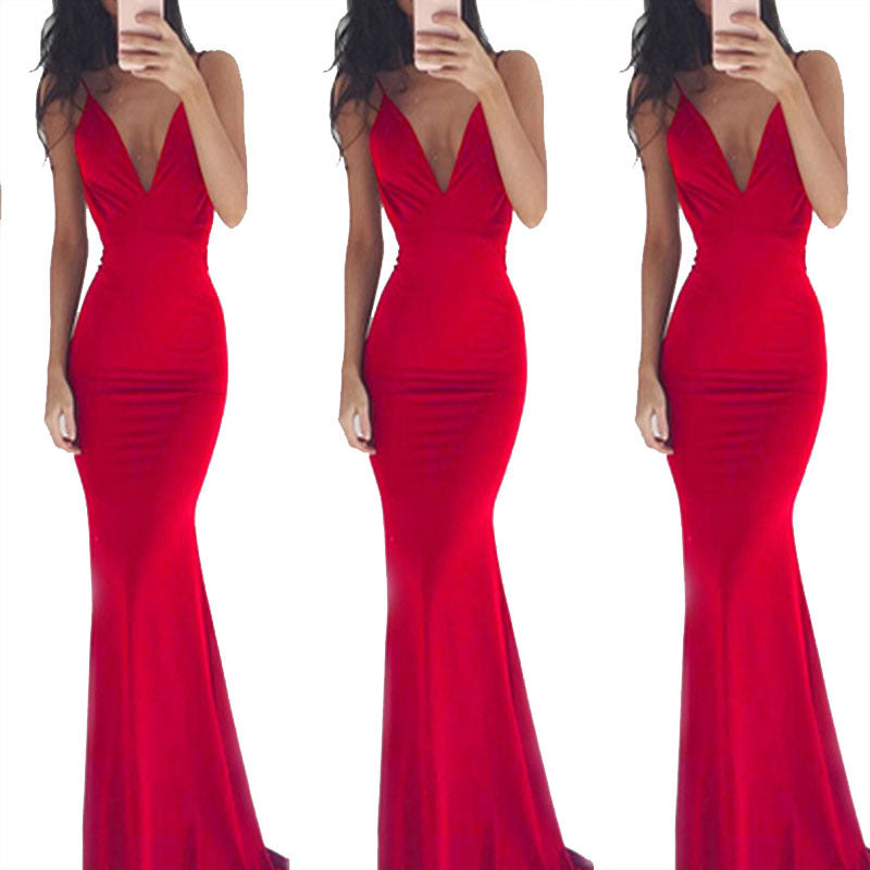 Milk Silk Sling Backless Trailing Annual Party Dress
