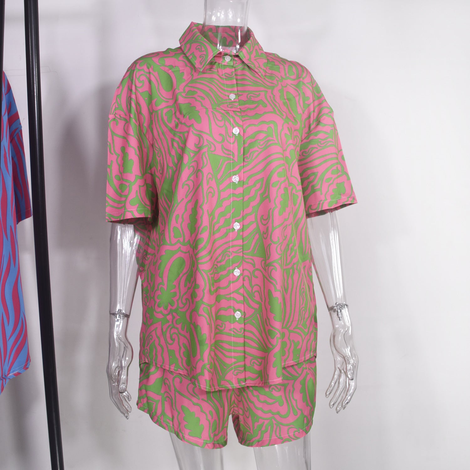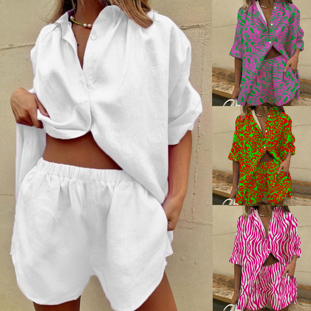 Single-breasted Lapel Short-sleeved Shirt Two-piece Wide-leg Pants