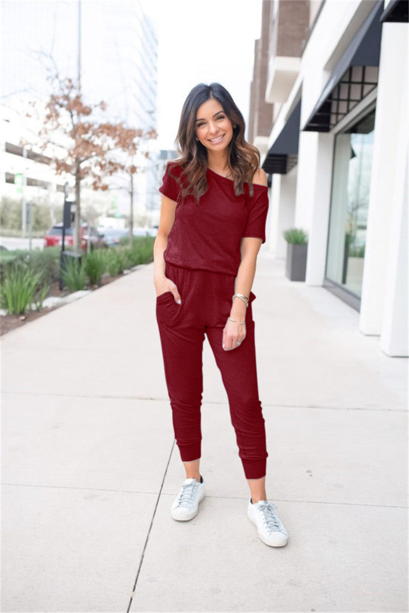 Women's Hot Sale Short Sleeve Strapless Jumpsuit Women